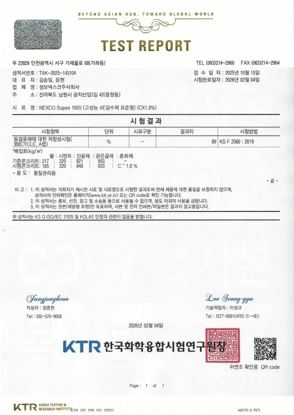 동결융해 저항성 시험성적서 (2026년) Supex 100S (CX1.0%)