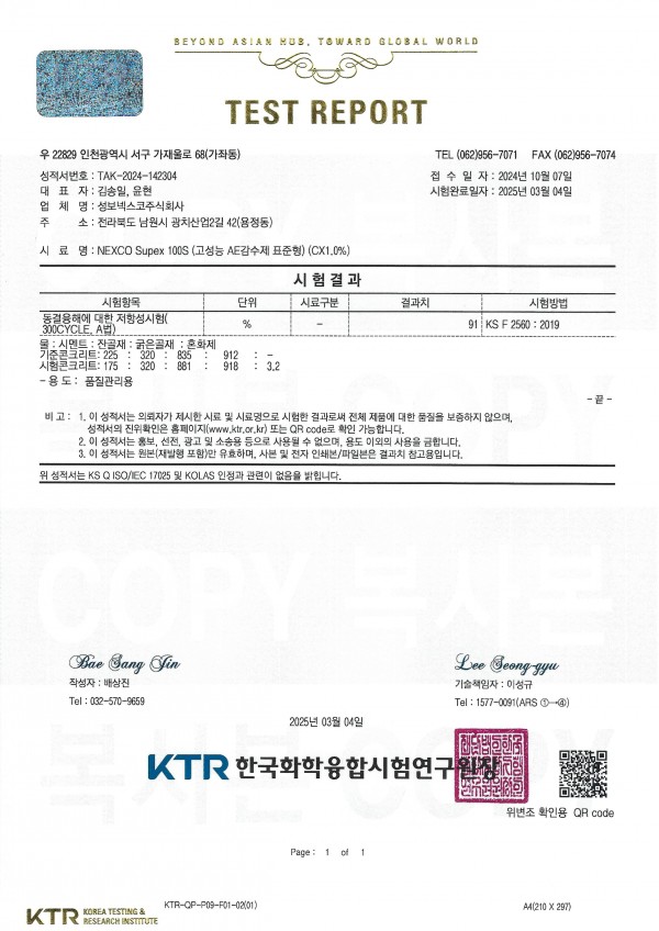 결융해 저항성 시험성적서 (2025년) Supex 100S (CX1.0%)
